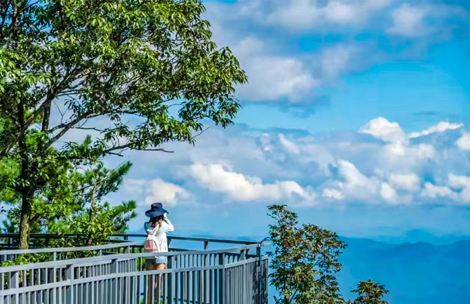 Guifeng Mountain Scenic Area is a tourist destination that is beautiful all year round. In spring, flowers bloom here like a brocade, with azaleas blooming in the mountains like a colorful painting, making it an excellent place to admire flowers. In summer, the average temperature here is 23 ℃, with green trees providing shade and a gentle breeze, bringing endless coolness and comfort, making it an excellent summer resort. In autumn, this is a paradise for outdoor enthusiasts, hiking in the mountains and forests, feeling the beauty of autumn, experiencing the excitement of exploration, and gaining a full sense of achievement. In winter, Guifeng Mountain is covered in silver and becomes an excellent place for snow watching and skiing. White snowflakes fall, and the ski resort is filled with laughter and joy, allowing you to unleash your passion and vitality in the world of ice and snow. The brand new Guifeng Mountain is fun all year round, with unique scenery and experiences waiting for you to encounter.