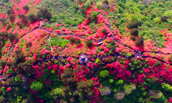 Guifeng Mountain Scenic Area cultivates azaleas, cherry blossoms, and paulownia flowers. The Rhododendron Sea is located on the Guibei Ridge of Guifeng Mountain. Every year at the end of April, the 100000 acres of wild rhododendrons on the mountaintop enter their peak flowering season; Sakura Valley is located in Guifeng Canyon. During the Spring Equinox season, wild cherry blossoms bloom as scheduled; Tonghua is located near Hanyang Village in the scenic area. In late spring and early summer, thousands of acres of Tonghua bloom in the wind, complementing the sea of azaleas on the mountaintop, and rightfully becoming the "messenger" of the azaleas on Guifeng Mountain.