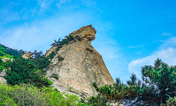 “龟首”,是由一块巨大的裸露花岗岩石形成的山体,俊俏挺拔、气势宏伟,海拔1260米,其神形酷似一只翘首问天的万年巨龟,被誉为“天下第一龟”。龟首它仰望天空,求福于人间。常登龟首者,沾神龟之灵气,胆量倍增,且延年添寿,故龟首又名“添寿顶”。从龟首俯瞰群山,巍峨挺拔,满山苍翠,层层叠叠,优美逶迤的山岭,蜿蜒盘旋,犹如一条正在酣睡的巨龙,群山环抱的龟首,颇有吞天逐日之势。神奇的龟首是大自然赋予人类的自然瑰宝,也是景区标志性的奇特景观,堪称世界地质奇迹。