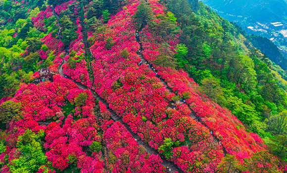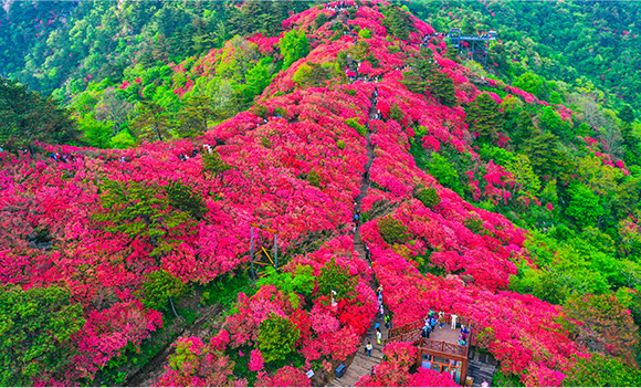 ——“龟峰之奇”在奇花。“人间四月天,麻城看杜鹃”享誉全国。龟峰山上有连片10万亩原生态古杜鹃群落,秀美甲天下。
