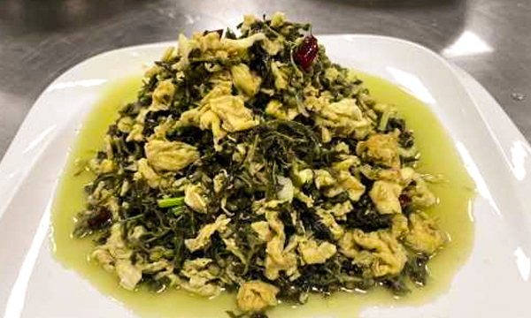 龟峰山景区龟峰客栈选用的食材多以绿色健康的农家山野菜为主,菜品形式多样,与时下流行的“康养”主题保持一致。野山笋炒腊 肉是传统名菜之一 ,以腊肉和野山笋为主料的一道美食 。春雨过后 , 山间竹林中 ,春笋便破土而出 ,这是来自山间竹林中的极品美味 ,也是麻城人 记忆里家乡的味道 ,更是外地游子春天的乡愁!