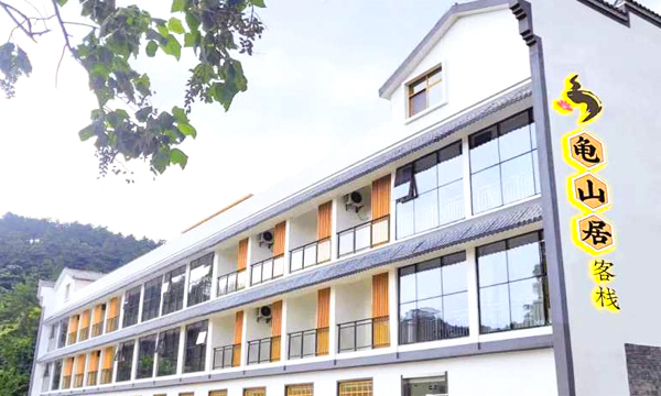 幽深奇秀龟峰山,伴山而眠客栈情。“返璞归真,以人为本”是龟山居客栈的本质。客栈外围为全景落地玻璃客房,拉开窗帘就能见到茂密森林,抬头可见杜鹃花海和龟首矗立云端,是视野绝佳的赏花、赏山景之处;中庭为集书屋、休憩为一体的大堂吧和多功能厅;中庭楼顶为丹桂飘香的露天阳台。顶层拥有阳光茶吧一间,环境优美,夜幕降临,坐在茶室里,听着大自然的声音,摇晃着手里的星空特调,萤火虫闪闪环绕,抬头拥抱整个星空,这便是对龟峰山的最好诠释。