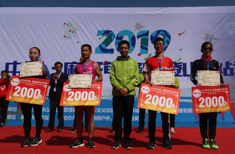 经过体力与耐力的激烈角逐后,比赛结果逐一揭晓!最终,来自武汉锋利跑团的选手罗方林以53分的成绩斩获竞赛组男子第一名;来自麻城悦途户外的选手李晓华夺得竞赛组女子第一名;而休闲组第一名则由选手龚西平荣获。赛事主办方领导分别为获奖选手颁奖,并合影留念。至此,2019中国龟峰山登山大赛圆满落幕!