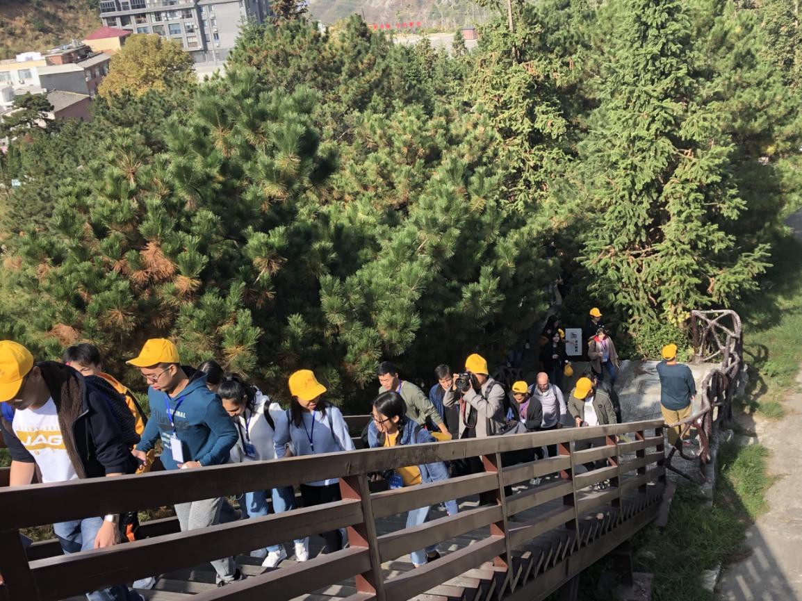 青少年交流团的同学们在关口坳停车场下了大巴车后,便有说有笑的开始合影,这一刻,停车场充满了令人向往的青春气息。略作休整后,同学们便干劲十足、争先恐后的向着山顶进发!