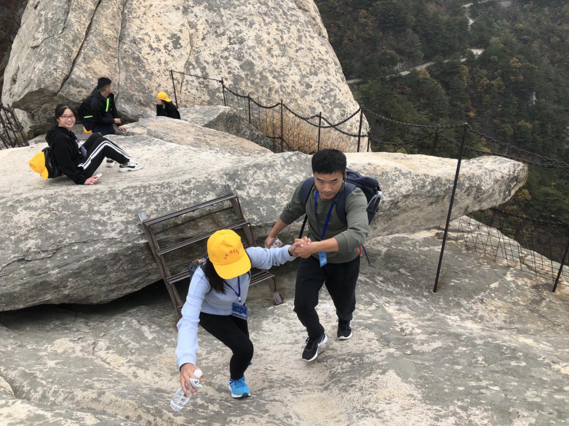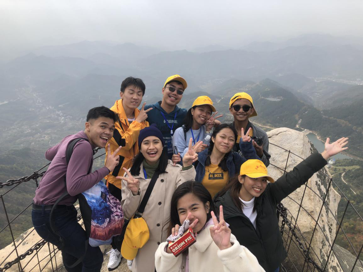 历经千辛万苦后,同学们终于登上了龟峰山景区的至高点——添寿顶,登顶的喜悦完全压过了登山的劳累,同学们开心的合起了影。