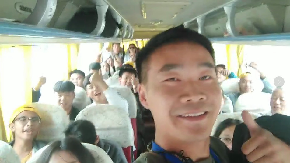 分别时刻,导游李帅与同学们在客车上合影,同学们为龟峰山金秋的灵秀风光所折服,并对景区热情的服务赞不绝口……美好又开心的时间总是让人感觉短暂,旅程最后,同学们表达了想重游龟峰山景区的愿景:衷心希望在杜鹃花盛开的时候,能再相聚于美丽的龟峰山!