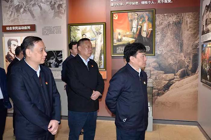 在大别山精神红色展览馆,大家认真学习了鄂豫皖革命根据地开展革命、发展壮大的恢宏历史,并现场召开党史学习教育会,观看教育片《红廉大别山》,举行“湖北交投集团党史学习教育基地”授牌仪式,龙传华带领全体党员重温入党誓词,陈劲超主持会议。