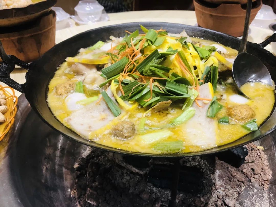 吊锅一锅可吃上十几种食材(炸鱼块、鱼面、肉糕、干竹笋、腊肉、绿豆圆子、莴苣、炸豆腐、腊鸭、白菜、萝卜等),多种食材的风味相互交融,在高温和时间的作用下,创造出超越原始食材的独特风味和口感。